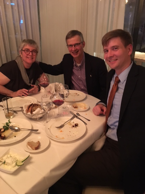 From right to left: Dr. Ohly, Dr. Migliazzo, and Beth Migliazzo enjoying dinner at Estratorio Milos in the Cosmopolitan.