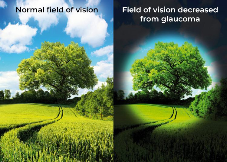 Early stage glaucoma can occur without any symptoms, and only until the disease progresses does the patient have noticeable vision loss. If the patient goes undiagnosed and untreated, damage to the optic nerve can occur, which may cause permanent blind spots to develop in the peripheral (side) vision. These spots may not be noticeable until the optic nerve has become severely damaged and the amount of vision loss has begun to impede on the central vision. Optic nerve damaged and irreversible vision loss can be decreased and even avoided with proper early diagnosis and treatment through yearly eye exams with your optometrist or ophthalmologist.